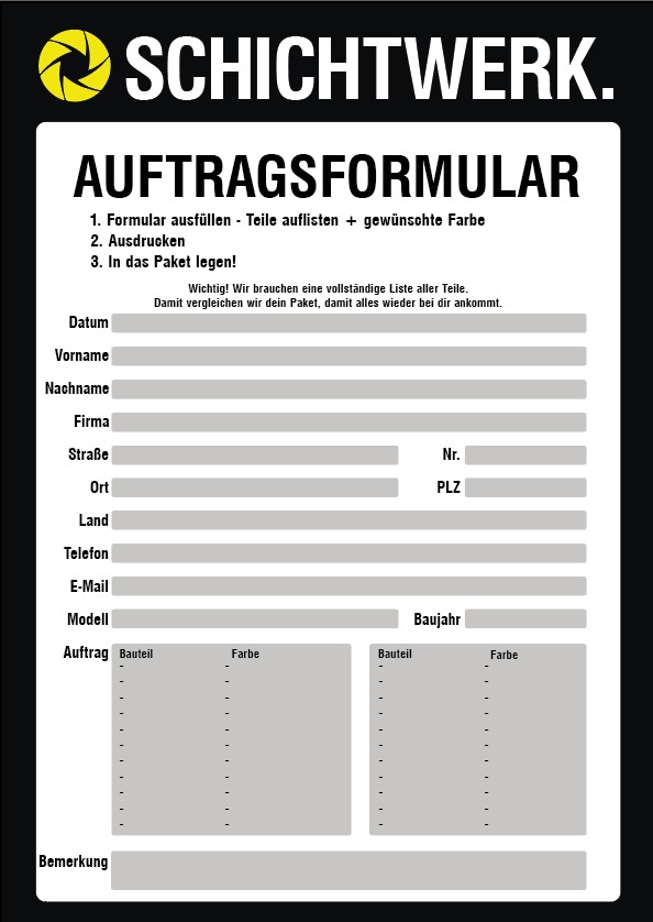 Bauteile, Farbe, Sonderarbeiten wie Lager De-/Montage kannst du hier aufführen